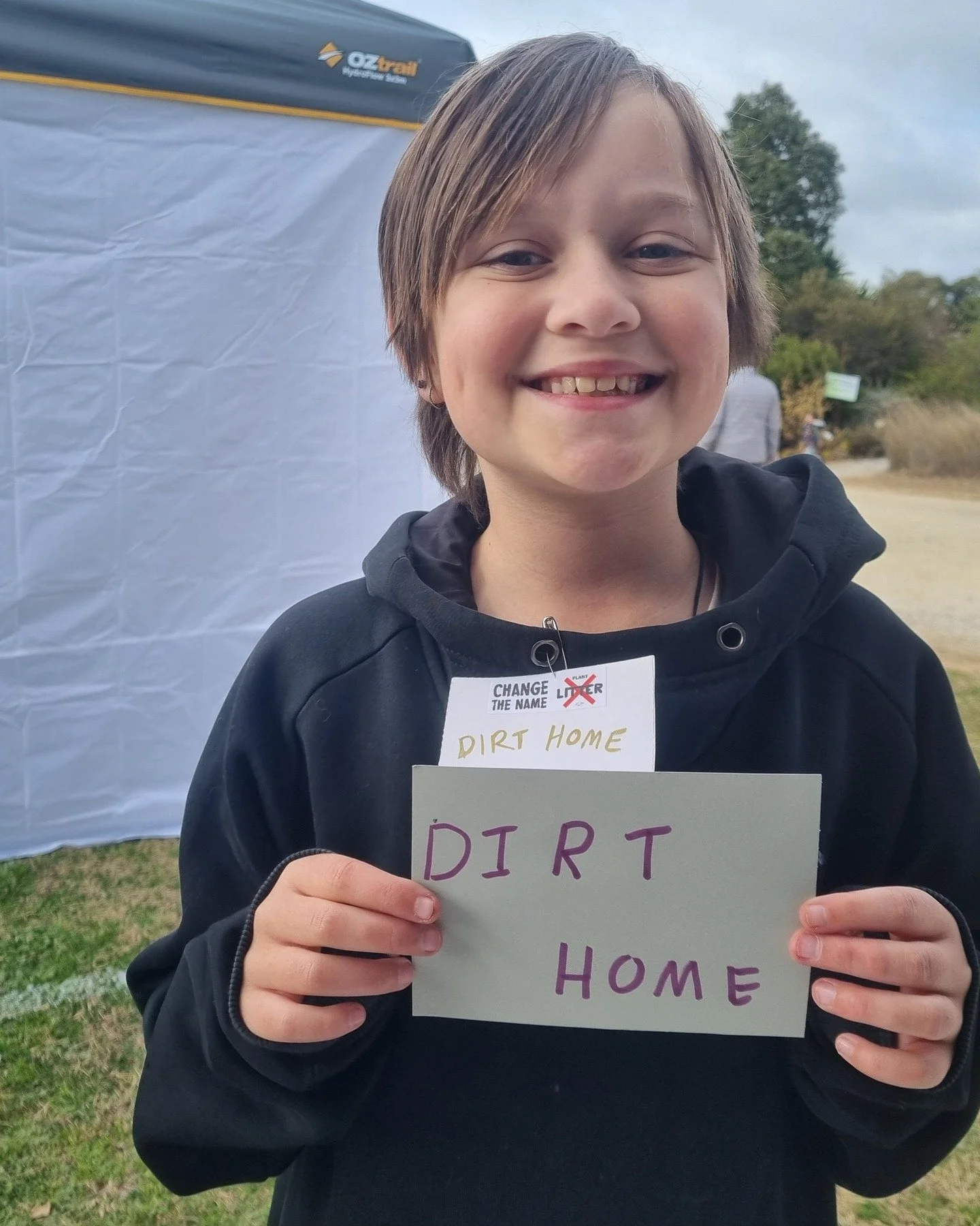 At each event her board fills up with suggestions, and your can even wear yours around on your personalised Change The Name-TAG - by the end of the event everyone will be talking about litter!